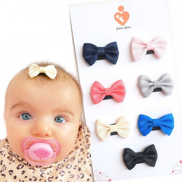 Sahici Anne 7 adet Seyrek Saçlı Bebek Tokası Seti Fiyonk Toka Saç Aksesuarı