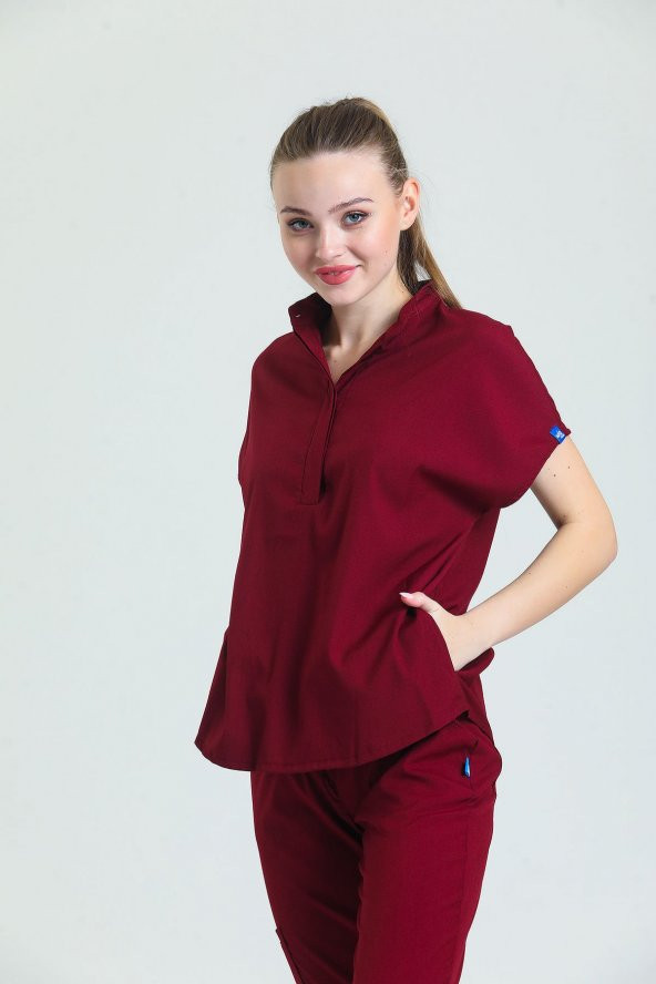 SANEM- Kadın Likralı Bordo Üniforma Üst