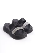 SARAH Düz Topuklu Taşlı Şeritli Kalın ve Ortopedik Taban Kadın Terlik CST - SiyahBeden