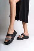 - SARAH Düz Topuklu Taşlı Şeritli Kalın ve Ortopedik Taban Kadın Terlik CST - Siyah