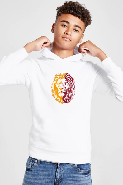 Sarı Kırmızı Aslan Beyaz Çocuk 3ip Kapşonlu Sweatshirt