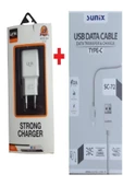 - Şarj Adaptörü Tech T444 Auto-ıd Özellikli 2.1a Ve Sunix Sc-72 Type-c 2a Şarj Data Kablosu