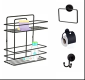 SAS Banyo Aksesuar Seti 4 Lü SİYAH , Ömür Boyu Paslanmaz Düz Şampuanlık Rafı SİYAH TŞ-02