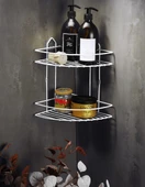 SAS Ömür Boyu Paslanmaz Yapışkanlı 2 Katlı Banyo Köşeliği Şampuanlık Düzenleyici Beyaz EK-02