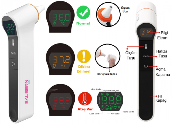 Ana Sayfa Anne & Bebek & Oyuncak Bebek Bakım ve Sağlık Bebek Bakım Bebek Cilt Bakım Ateş Ölçer Saubern BNT9603 Temassız Alından Ateş Ölçer - Kulaktan Ateş Ölçer - Termometre