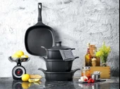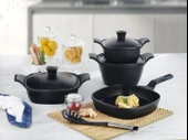 Schafer Felsen Kare Döküm Tencere Seti 7 Parça Siyah