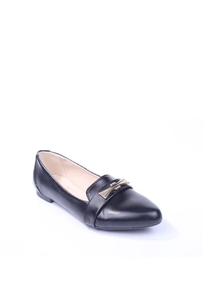 Sedef 0942 Kadın Siyah Fiyonklu Günlük Babet Ayakkabı