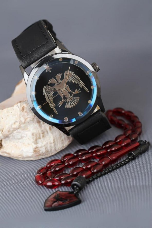 Ana Sayfa Takı & Gözlük & Saat Saat Erkek Kol Saatleri Selçuklu Arması Figürlü Deri Kordonlu Erkek Saat ve Sıkma Toz Keh