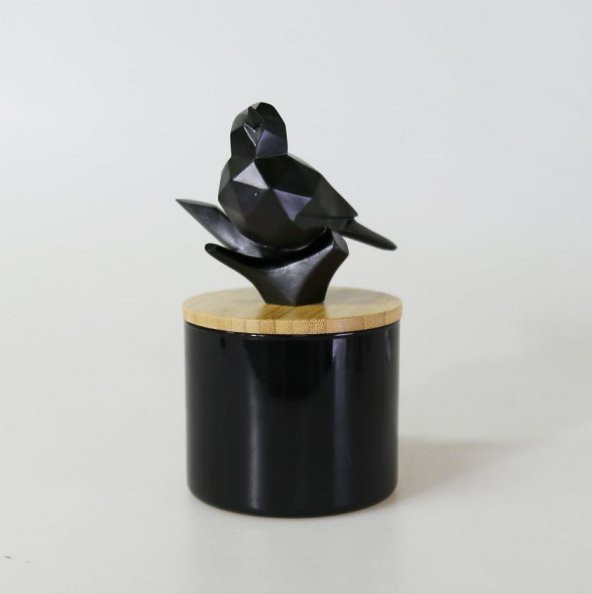Selim Dekor Kuşlu Küçük Kavanoz Siyah