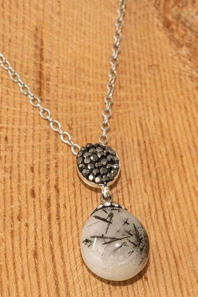 Sertifikalı Ham Zirkon Taşlı Rutil Kuvars Taşı Kolye (Melek Saçı)