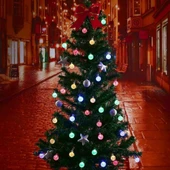 SGE TEKNOLOJİ 7 METRE 50 LED ŞEFFAF KRİSTAL TOP RENKLİ SOLAR GÜNEŞ ENERJİLİ BAHÇE TERAS PARTİ BALKON SÜSÜ AYDINLATMA LAMBASI