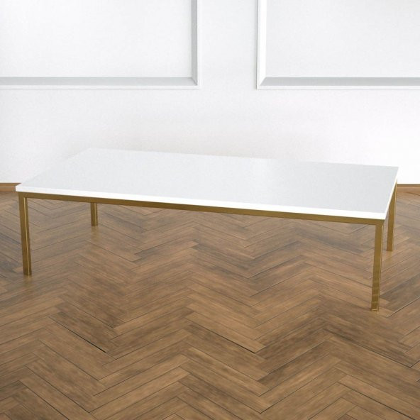 Shiny Orta Sehpa - Pirinç Ayak Beyaz Lake Tabla