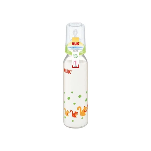 Silikon Emzikli Cam Biberon 250 ml - Yeşil