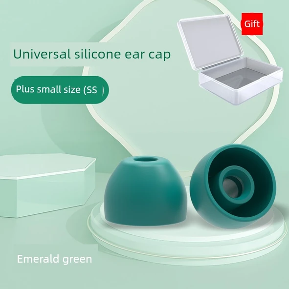 Silikon Kulaklık Ucu Kutusu - Zümrüt Yeşili - Plus Küçük Boy - 2 Çift
