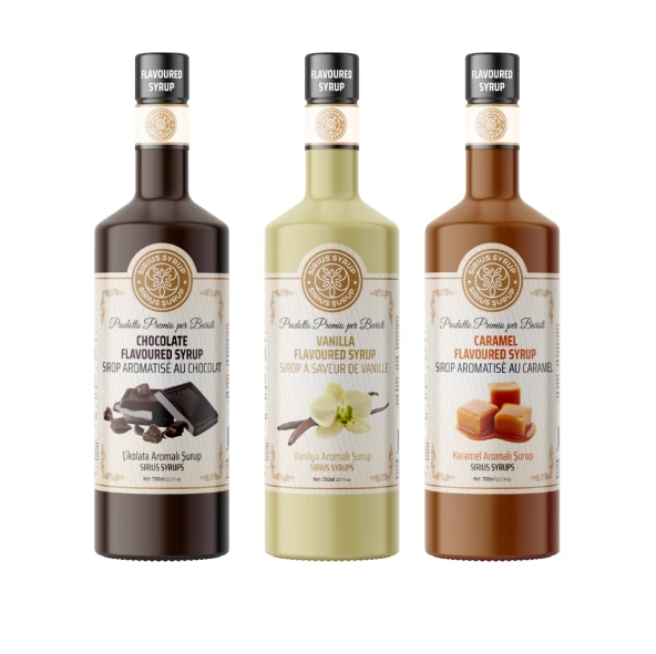 Sirius Premium Çikolata, Karamel, Vanilya Aromalı Şurup 3'lü Set (3x700 ml)