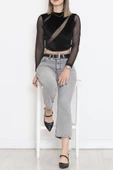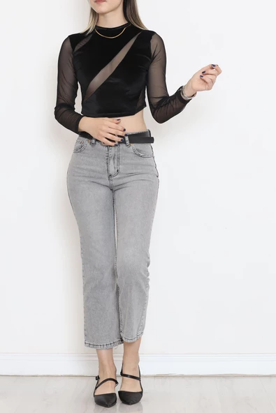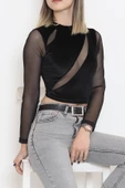 Sırtı Tül Önü Kadife Bluz Siyah - 120566.148.