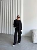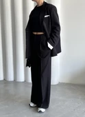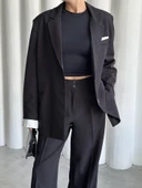 Siyah Gömlek Detaylı Blazer Ceket Pantolon Takım