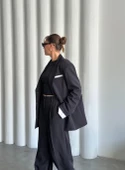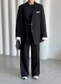 Siyah Gömlek Detaylı Blazer Ceket Pantolon TakımBeden Seçiniz