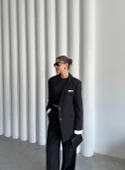 - Siyah Gömlek Detaylı Blazer Ceket Pantolon Takım