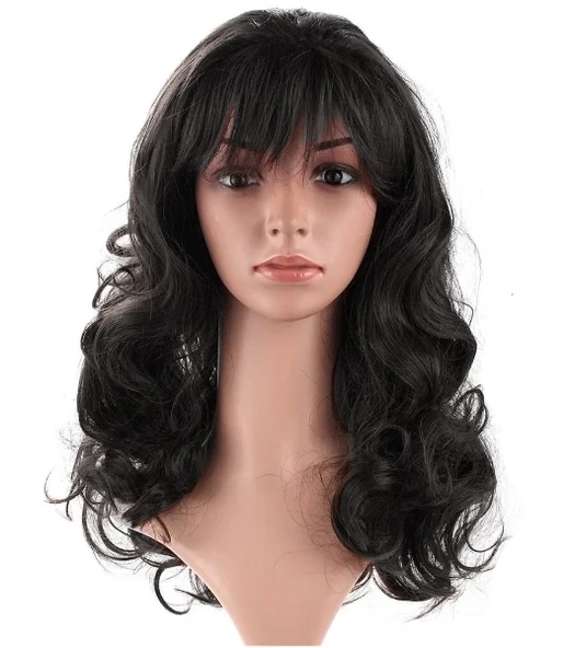 Siyah Renk Dalgalı Uzun Parti Peruğu 55 Cm