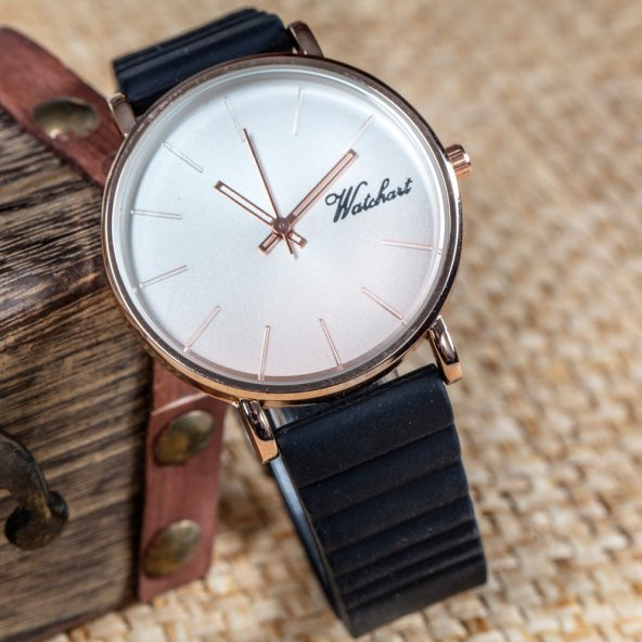 Siyah Renk Silikon Koronlu Rose Kasa Kadın Kol Saati ST-303347