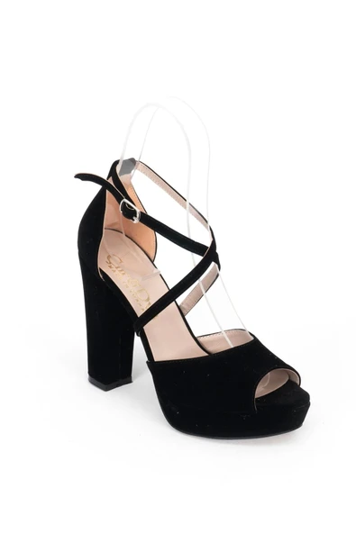 Siyah Süet Kadın Abiye Ayakkabı Kadın Topuklu Şık Gece Ayakkabısı Zarif Tasarım Yüksek Topuk
