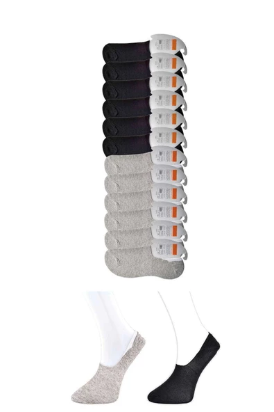 Siyah ve Gri Erkek Babet Çorap 12 çift