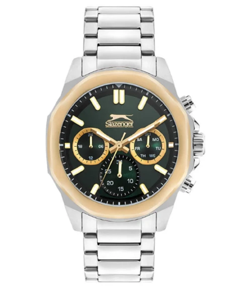 Slazenger Sl.09.2388.2.02 Quartz Çelik Gri Yeşil Kadran 44 Mm Erkek Kol Saati-SL82