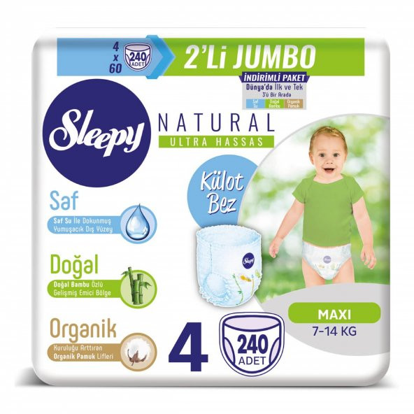 Sleepy Natural Külot Bez 4 Beden Maxi 4X2li Jumbo 240 Adet 7-14 Kg