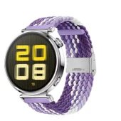 Sneezy Huawei Watch GT5 41mm İle Uyumlu Metal Klips Solo Fiberlink Kumaş Örgü Kordon Lila Beyaz