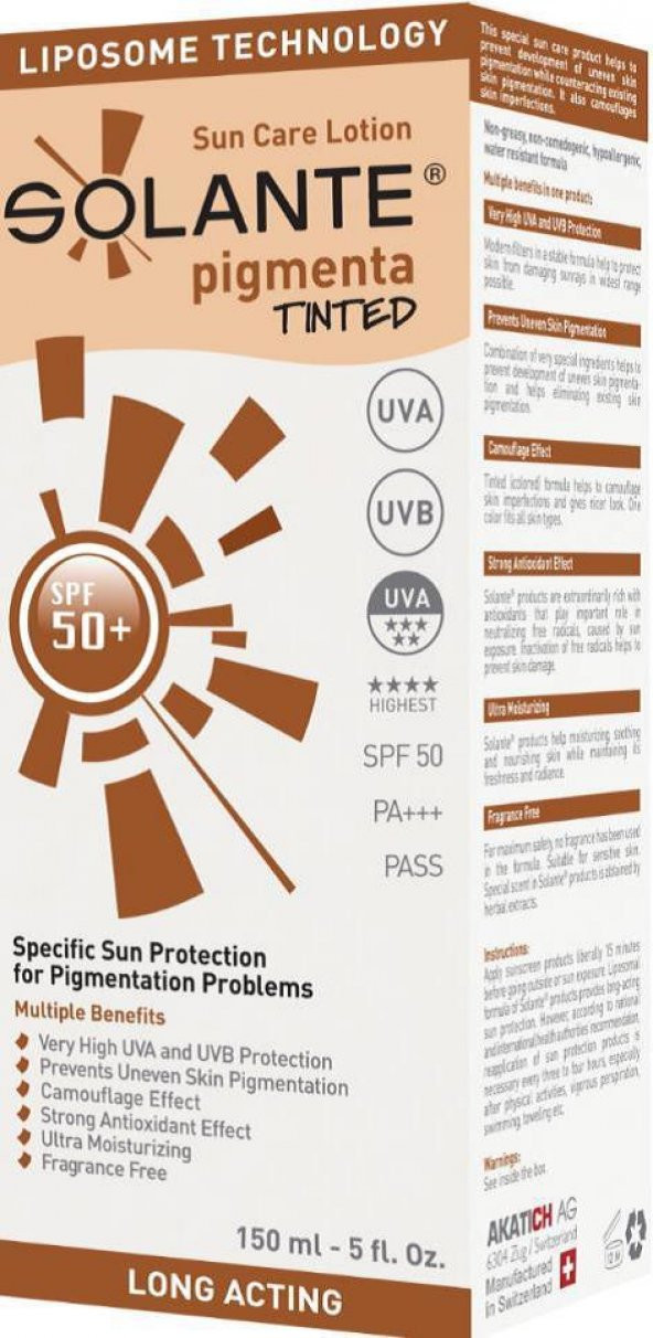 Ana Sayfa Kozmetik & Kişisel Bakım Kozmetik Güneş Ürünleri Solante Pigmenta Tinted Güneş Koruyucu Losyon Spf 50 150 ml