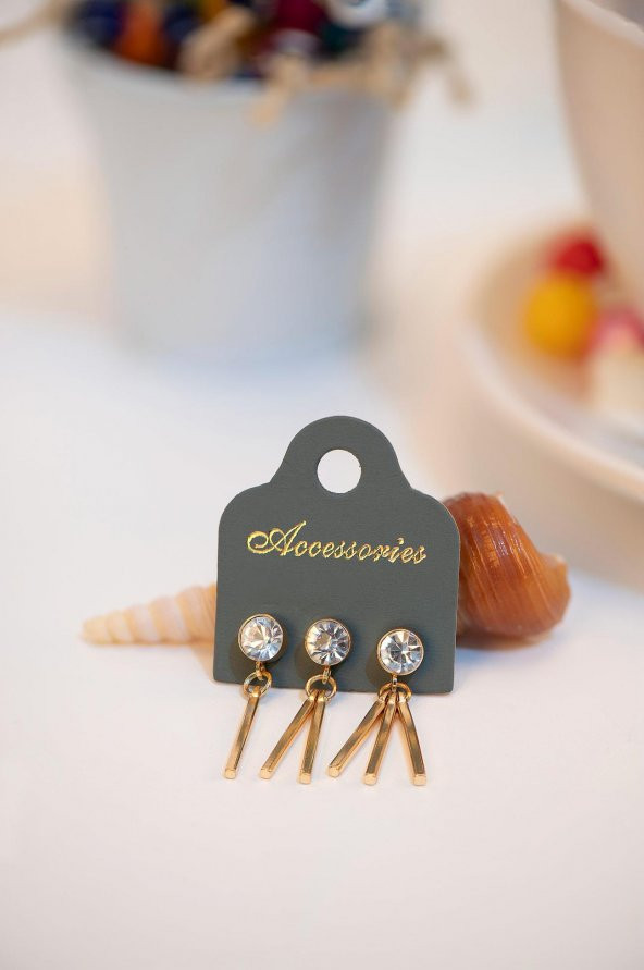 Soobepark Çoklu Küpe Çubuk Figürlü Sarı Renk