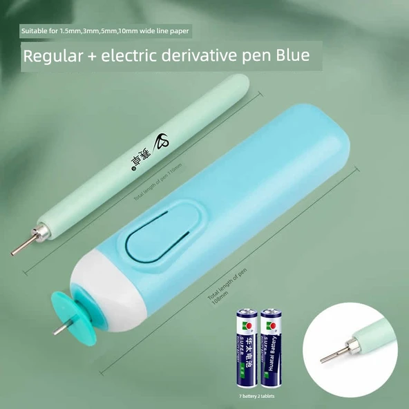 Standart ve Mavi Elektrikli Kağıt Kıvırma Kalemi Seti ve Pil