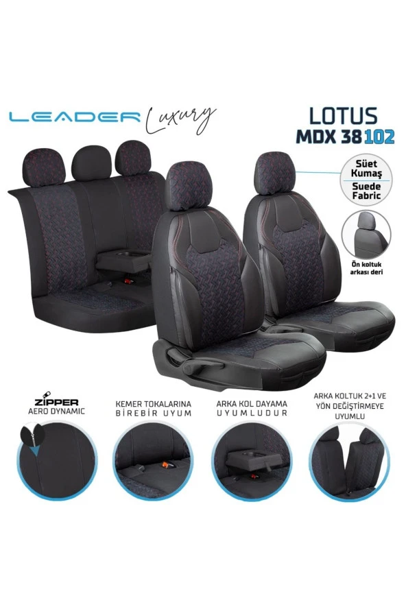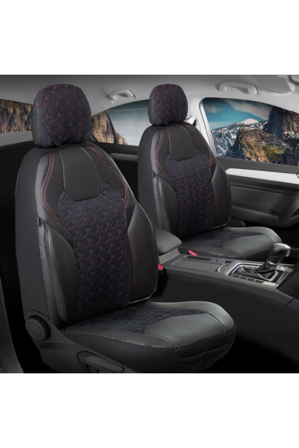 Startcar Volkswagen Sharan Deri Detaylı Süet Kumaş Ön Arka Set Oto Koltuk Kılıfı Siyah LOTUS SC