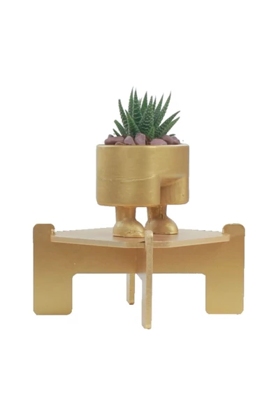 Stein Kohle Ayaklı Saksı Ahşap Dekoratif Kaktüs Saksısı 1 Adet Altın Renk Uygulamalı Pantolon Model