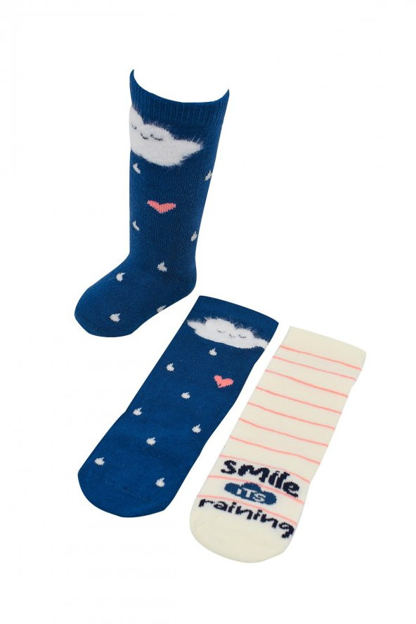 STEP İKİLİ SAKALLI BULUT KIZ BEBEK DİZALTI ÇORAP