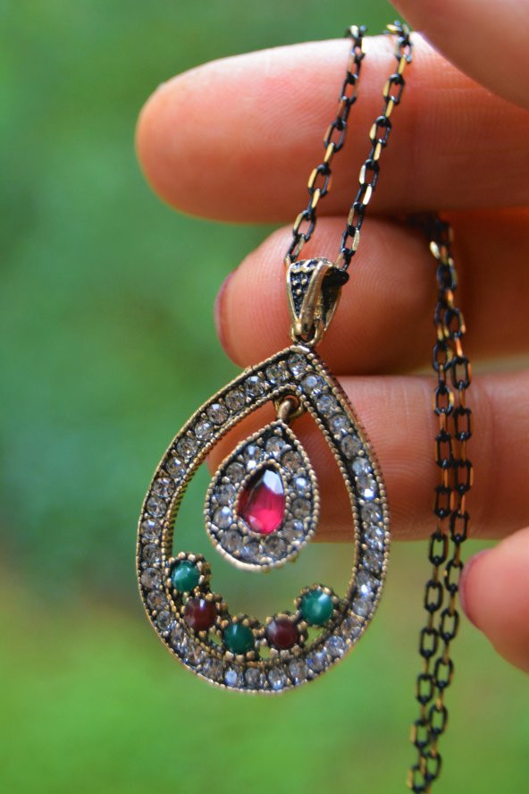 STONEAGE Kök Yakut Taşlı Otantik Bayan Kolye