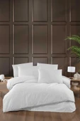 - Stripe Saten Line Çift Kişilik Nevresim Takımı Beyaz