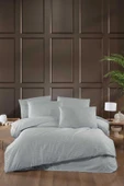 - Stripe Saten Line Çift Kişilik Nevresim Takımı Gri