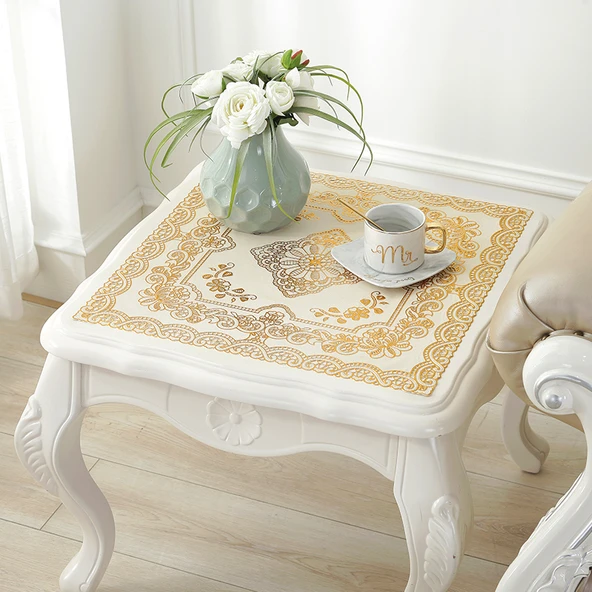Su Geçirmez PVC Masa Örtüsü - 50cm Çap Kare Altın - Tek Parça