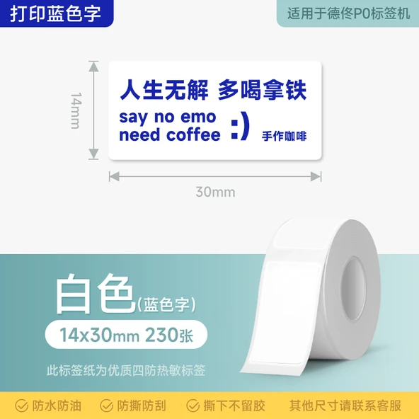 Su Geçirmez Termal Etiket Kağıdı [Mavi Yazı] 14*30 Beyaz Arka - 230 Sayfa/Rulo