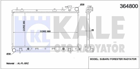 Subaru Motor Su Radyatoru Forester 05> Otomatık (360x688x26) - Kale 364800