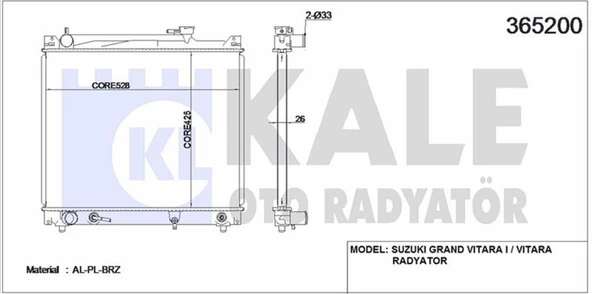 Suzukı Motor Su Radyatoru Grand Vitara 98>03 Otomatık (530x425x26) - Kale 365200