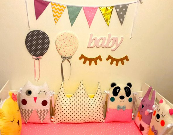 60x120 ve 70x120 cm beşik ölçüsü için üretilmiştir. 3 adet bulut yastık,1 adet büyük ayıcık yastık,1 adet taç yastık,1 adet tavşan,1 adet ayıcık,1 adet panda ,1 adet baykuş,1 adet lastikli çarşaf,1 adet uyku arkadaşı,2 adet kumaş balon,1 adet fotoblo...