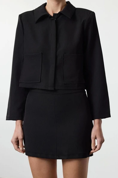 Tarz Kadın Modern Moda Normal Bel Boru Paça Gömlek Yaka Tüvit Kumaş Dokuma Ceket-Etek Takım