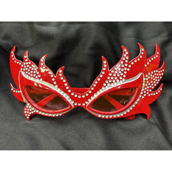 Taşlı Göz Kamaştıran Gecenin Yıldızı Kırmızı Parti Alev Gözlük