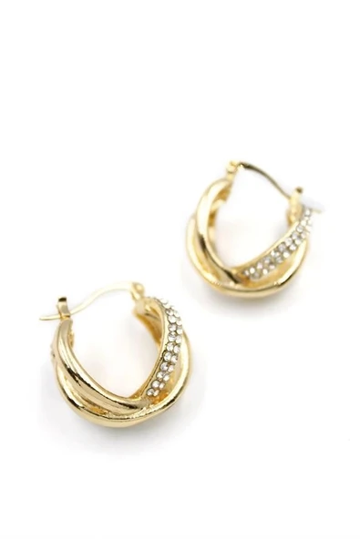 Taşlı Halka Küpe - Altın