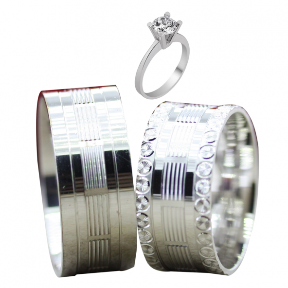 Taşsız Gümüş Çift Alyans Yüzük Tek Taş Hediyeli DN5302