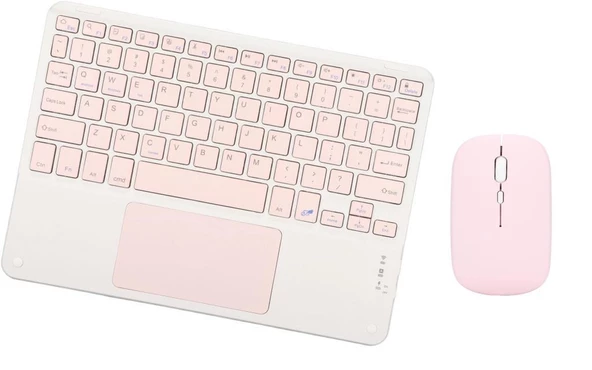Technopc Ultrapad UP10.S21LA 10" Uyumlu Kablosuz Bluetooth Dahili Bataryalı Şarjlı TouchPad'li Klavye Mouse Seti - Pembe