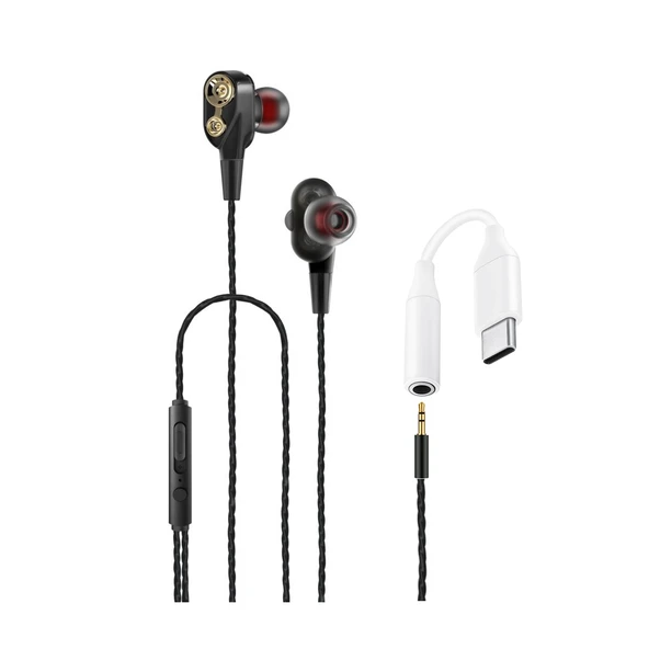 Tecno Hot Beats 3D Hifi 4 Hoparlörlü Redmi 9 Type-C to 3.5mm Jack Dönüştürücü Kablolu Mikrofonlu Kulaklık Siyah
